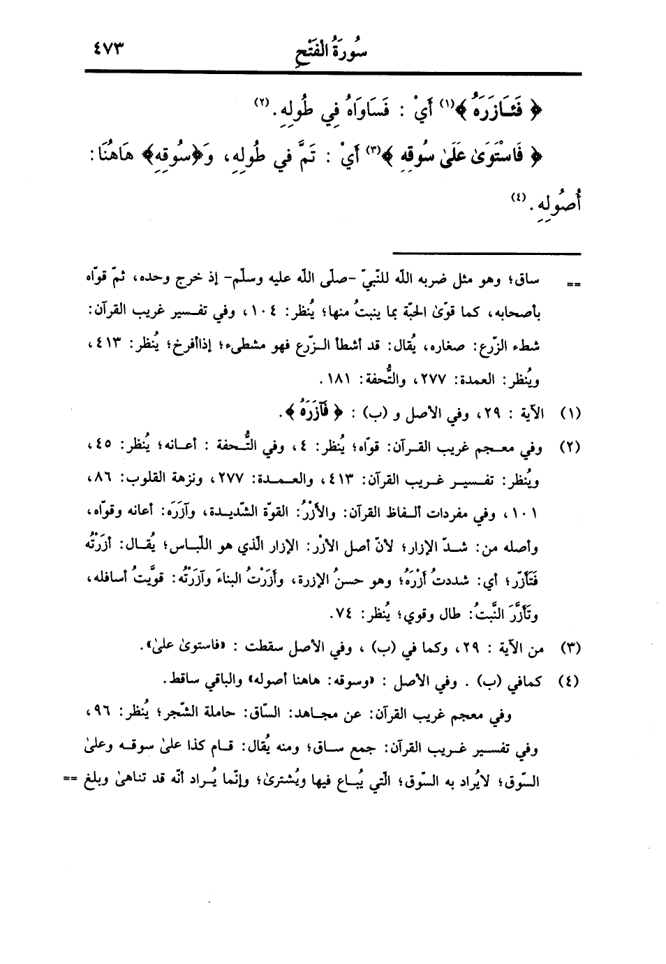 {فَئآزَرَهُ} أَي: فساواه فِي طوله. {فَاسْتَوَى على سوقه} أَي: تمّ فِي طوله، و {سوقه} هَاهُنَا: أُصُوله.