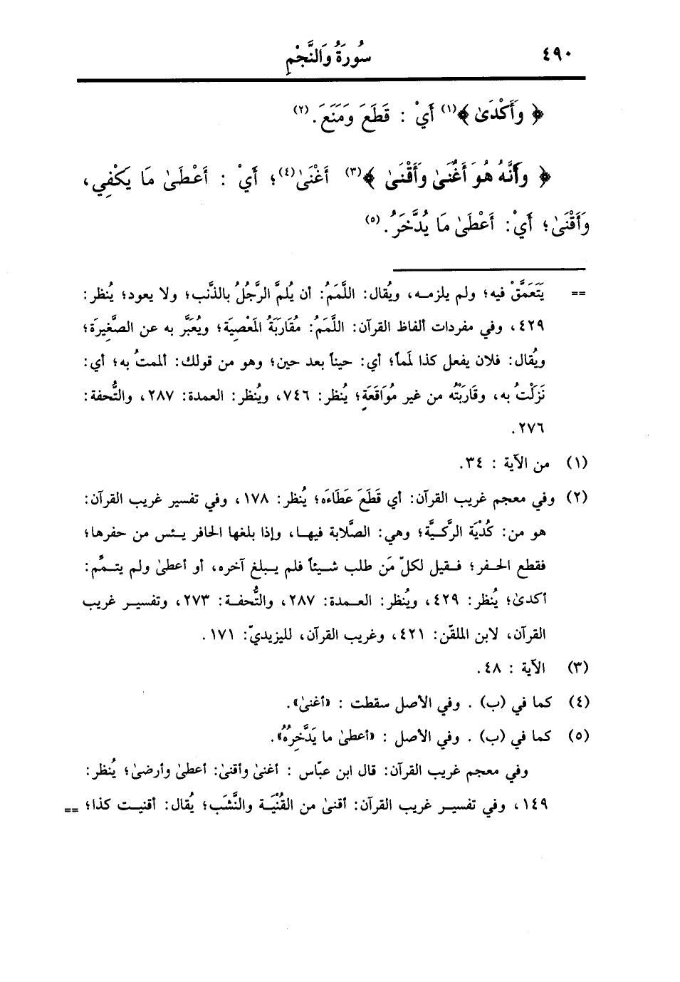 {وأكدى} أَي: قطع وَمنع. {وَأَنه هُوَ أغْنى وأقنى} أغْنى، أَي: أعْطى مَا يَكْفِي، وأقنى، أَي: أعْطى مَا يدّخر.