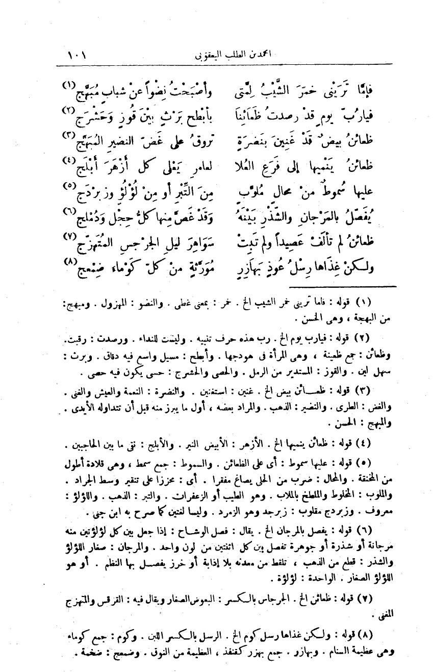 ظعائنُ بيضٌ قَدْ غَنِينَ بنَضرَةٍ ... ترُوقُ على غَضّ النضيرِ المُبَهَّج