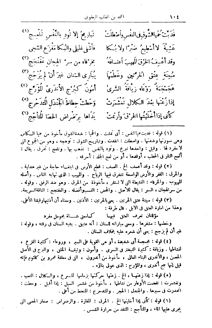 فَدَبَّتْ حُمَيا الشَّوقِ في النفْسِ واصْطلَتْ ... تَباريحُ إلا تُودِ بالنَّفْسِ تُلْعِج