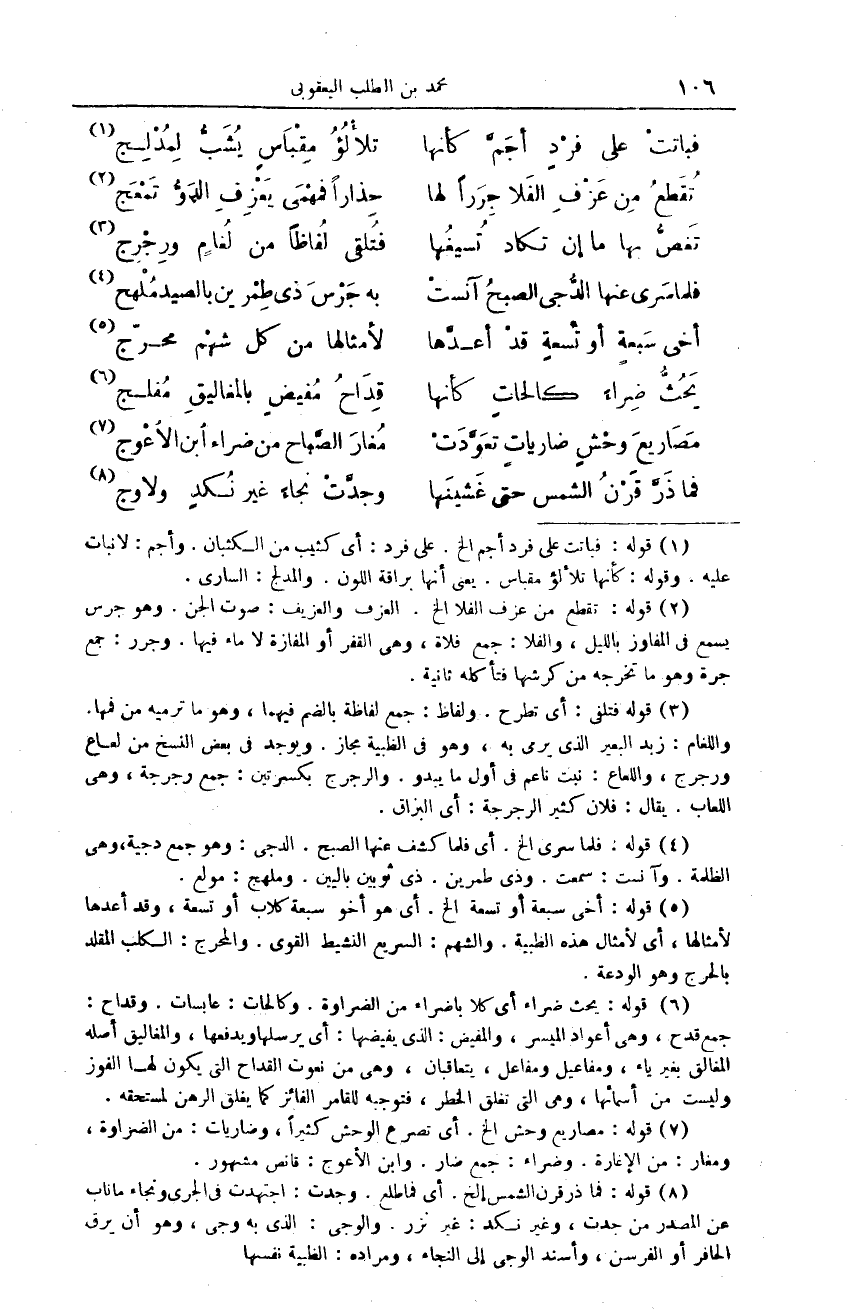 مَصَارِيعَ وحْشٍ ضارياتٍ تعَوَّدتْ ... مُغارَ الصَّباح من ضِراء ابن الاعْوج
