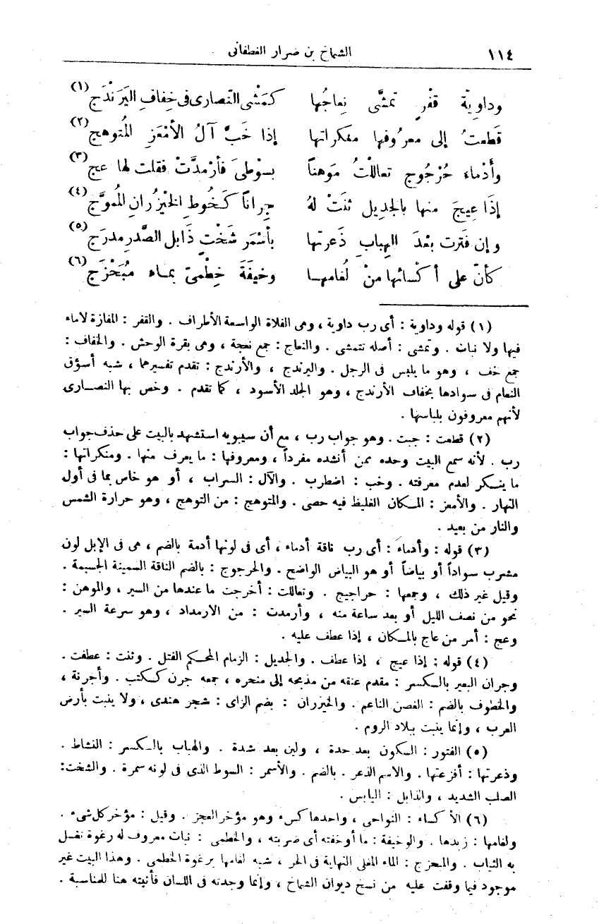 وَداوِيَّة قفْرٍ تمشَّى نِعاجُها ... كمَشْي النّصارى في خِفافِ اليَرنْدَج
