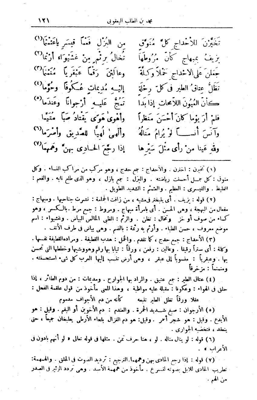 جَعَلنَ عَلى الأحْداجِ خَمْلاً وكِلَّةً ... وعَاليْنَ رَقْماً عَبْقَرياً مُنَمْمَا