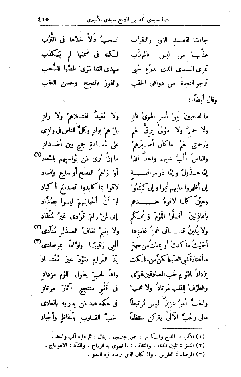 والحبُّ أمرٌ عزيزٌ ليس مُرتبطاً ... في حكمه عند مَن يدريه بالعادي