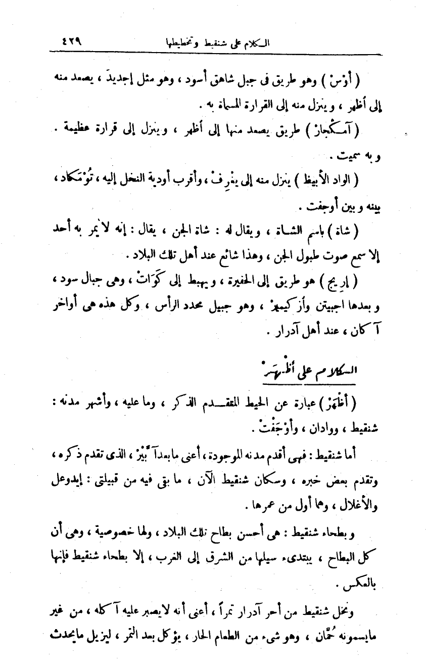 (أظْهَرْ) عبارة عن الحيط المتقدم الذكر، وما عليه، وأشهر مدنه: شنقيط، ووادان، وأوْجَفْتْ.