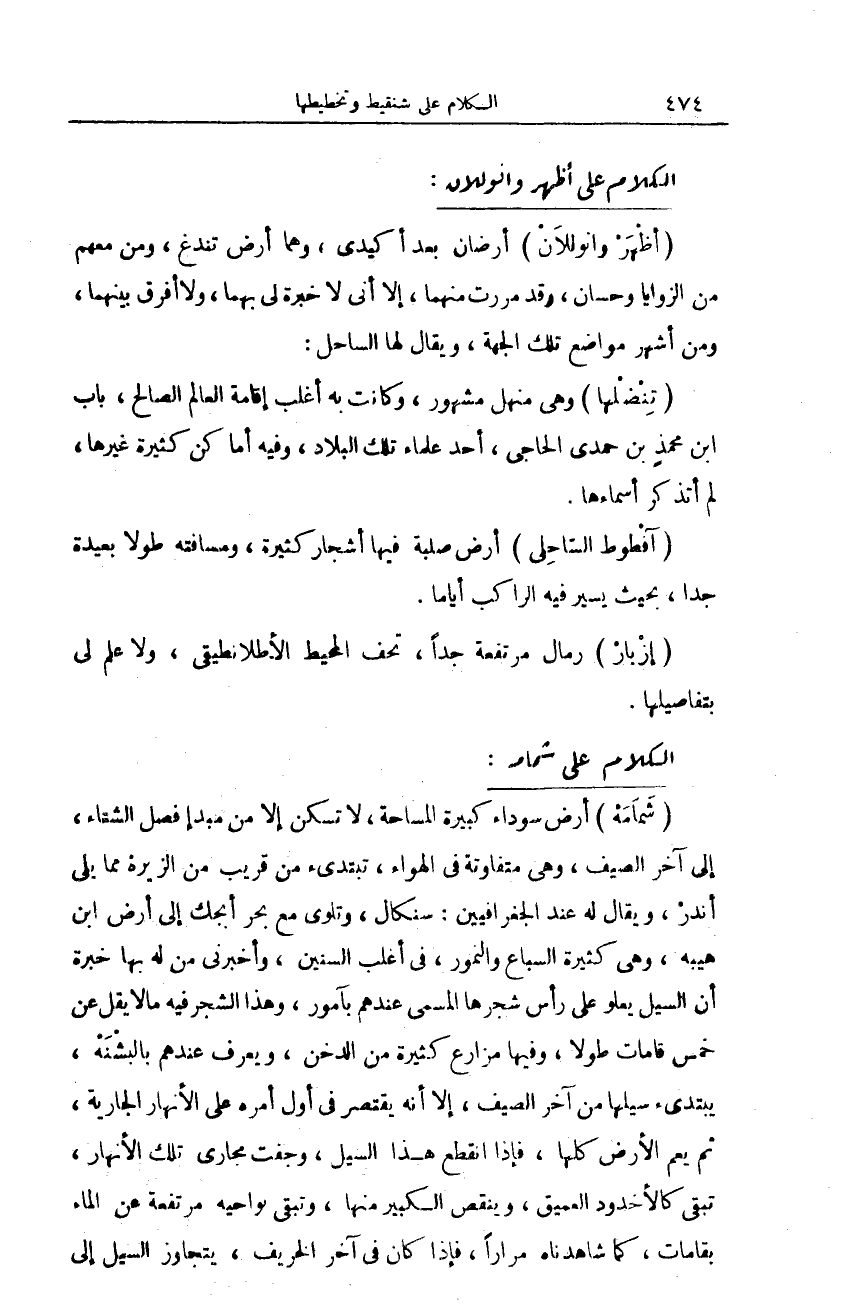 (أظْهَرْ وانوللاَنْ) أرضان بعد أكيدي، وهما أرض تندغ، ومن معهم من الزوايا وحسان، وقد مررت منهما، الا أني لا خبرة لي بهما، ولا أفرق بينهما، ومن