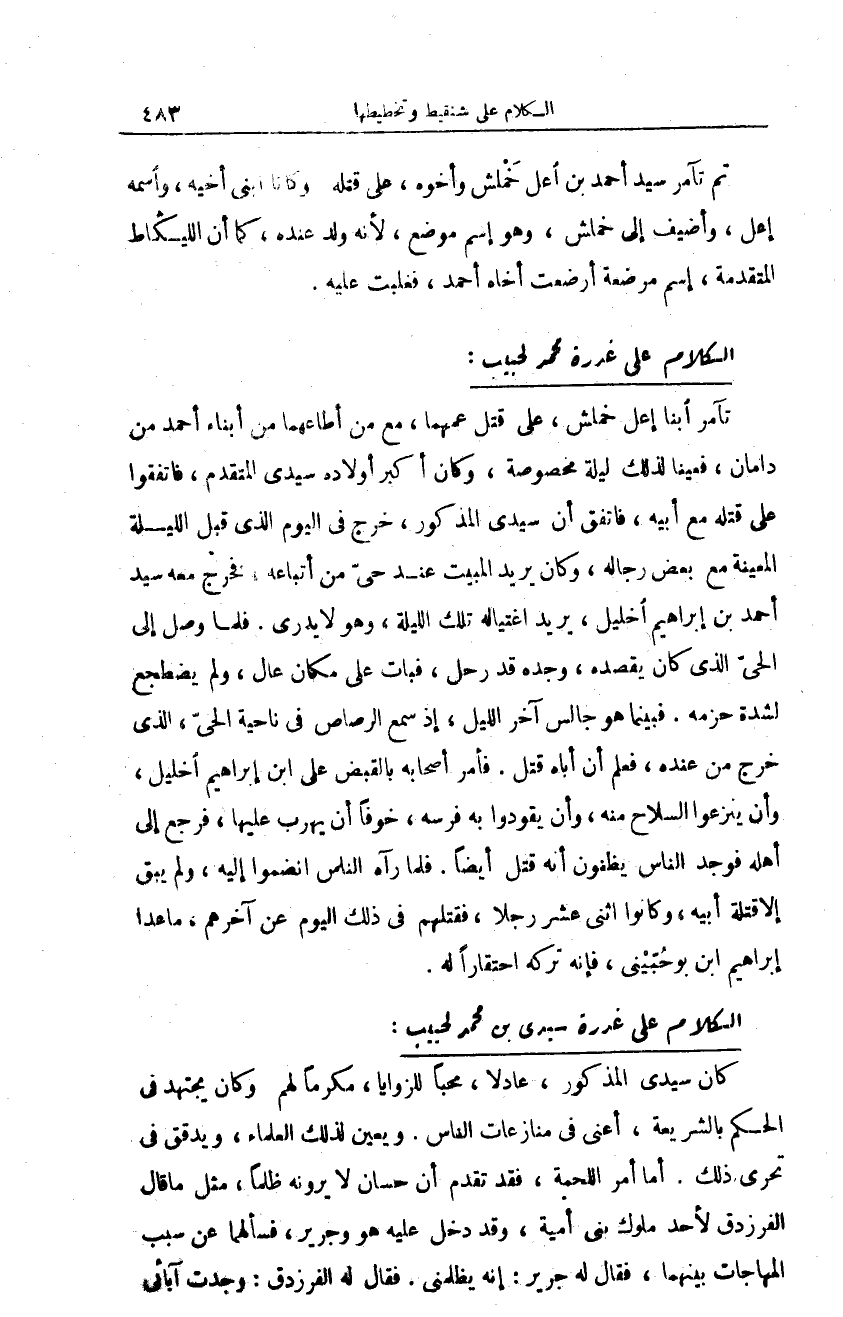 كان يقصده، وجده قد رحل، فبات على مكان عال، ولم يضطجع لشدة حزمه. فبينما هو جالس آخر الليل، إذ سمع الرصاص في ناحية الحيّ، الذي خرج من عنده، فعلم أن أباه قتل. فأمر أصحابه بالقبض على ابن إبراهيم اخليل، وأن ينزعوا السلاح منه، وأن يقودوا به فرسه، خوفا ان يهرب عليها، فرجع إلى أهله فوجد الناس يظنون إنه قتل أيضا. فلما رآه الناس انضموا اليه، ولم يبق الا قتلة أبيه، وكانوا اثني عشر رجلا، فقتلهم في ذلك اليوم عن آخرهم، ما عدا إبراهيم ابن بوحُبّيْني، فإنه تركه احتقارً له.