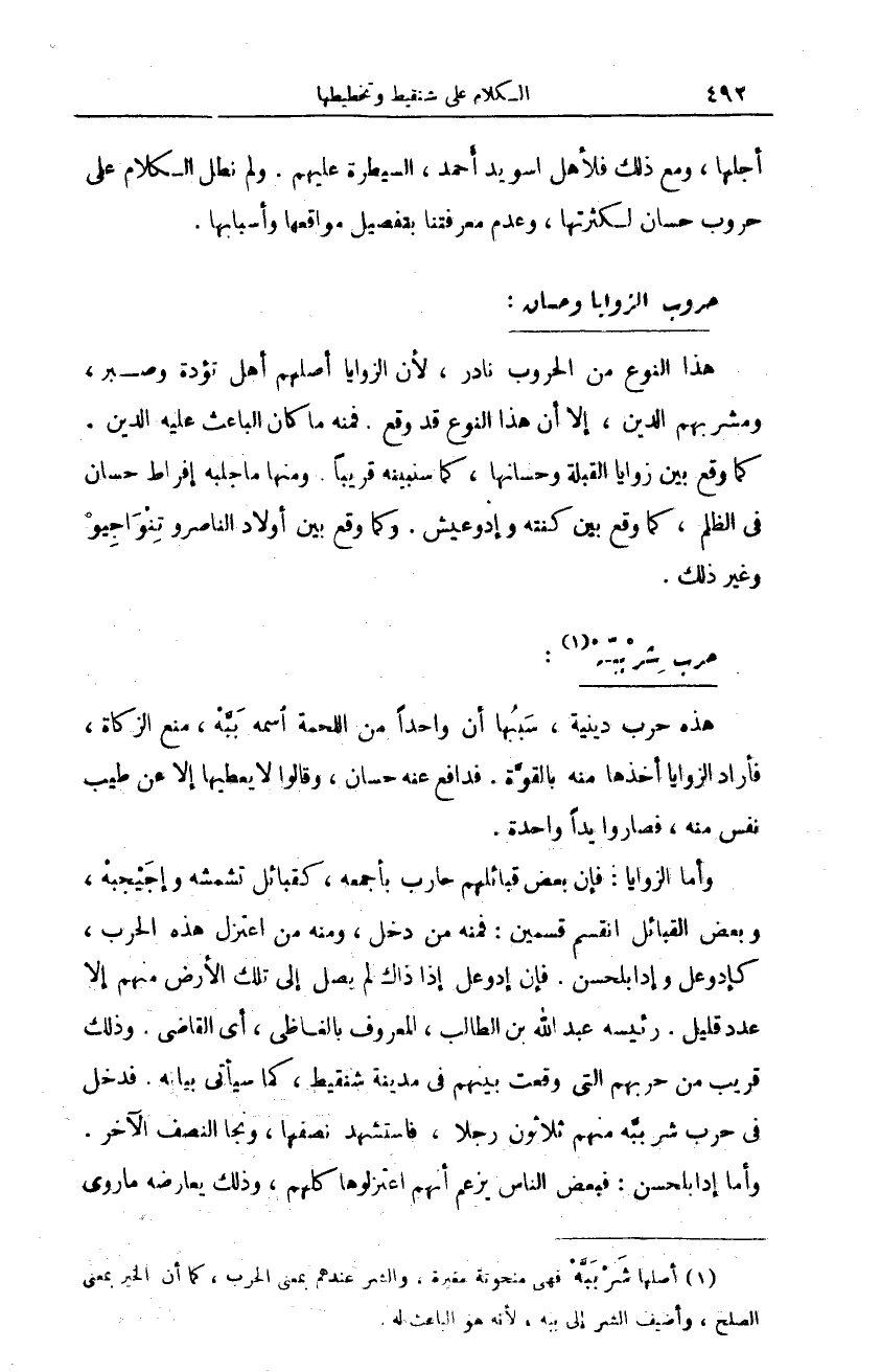 هذا النوع من الحروب نادر، لأن الزوايا أصلهم أهل تؤدة وصبر، ومشربهم الدين، إلا أن هذا النوع قد وقع. فمنه ما كان الباعث عليه الدين. كما وقع بين زوايا القبلة وحسانها، كما سنبينه قريبا. ومنها ما جلبه إفراط حسان في الظلم، كما وقع بين كنته وإدوعيش. وكما وقع بين أولاد الناصرو تِنْوَاجِيو وغير ذلك.