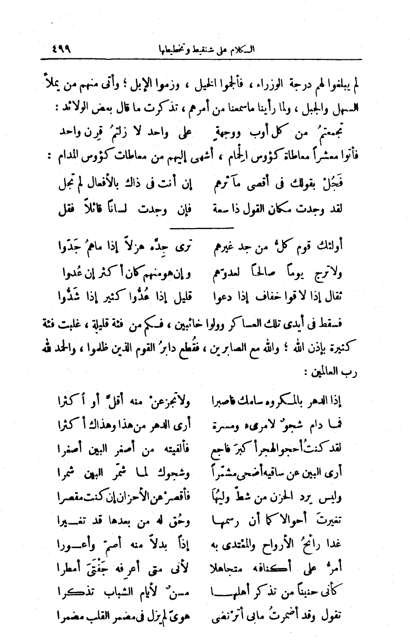 لم يبلغوا لهم درجة الوزراء، فألجموا الخيل، وزموا الإبل؛ وأتى منهم من يملأ السهل والجبل، ولما رأينا ما سمعنا من أمرهم، تذكرت ما قال بعض الولائد: