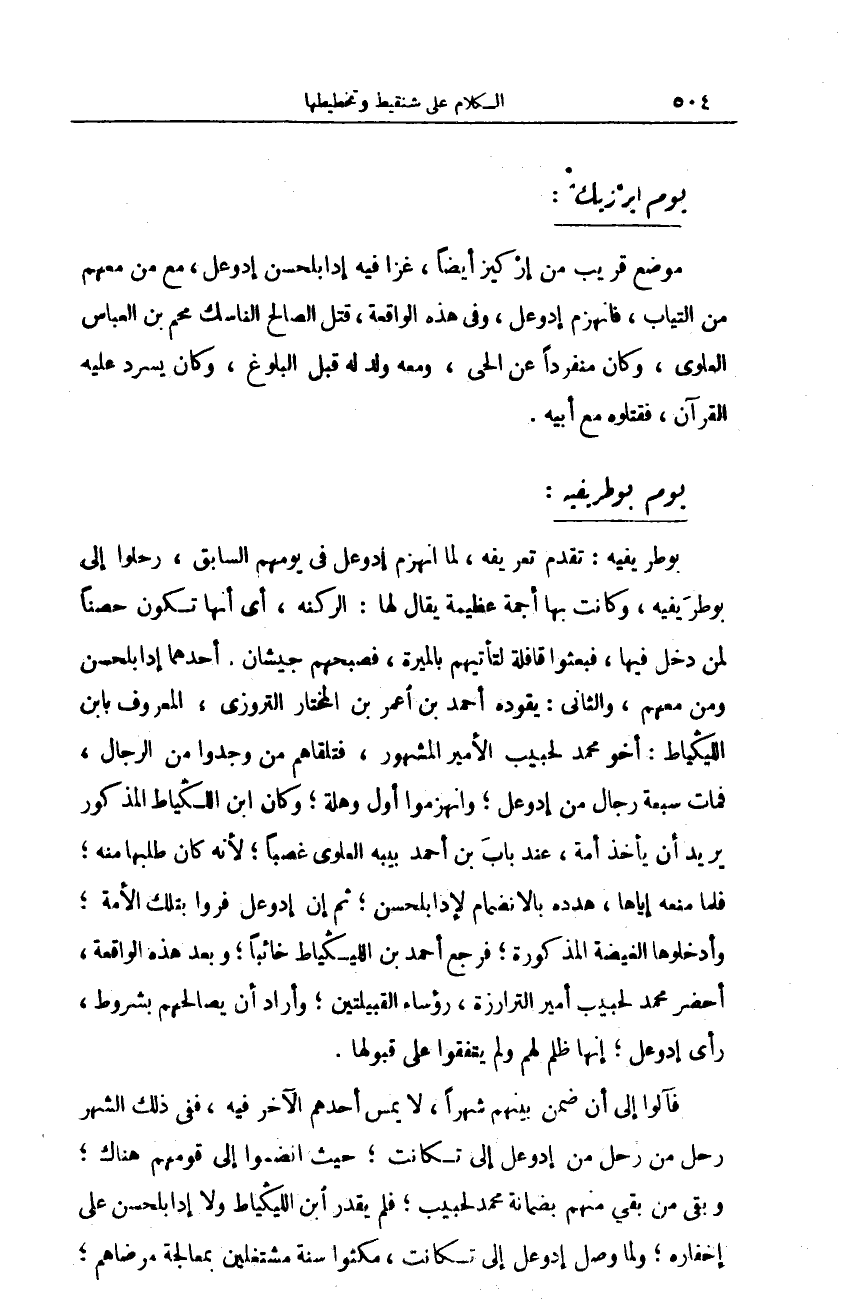 بوطريفيه: تقدم تعريفه، لما انهزم إدوعل في يومهم السابق، رحلوا إلى بوطريفيه، وكانت بها أجمة عظيمة يقال لها: الركنه، أي أنها تكون حصناً لمن دخل فيها، فبعثوا قافلة لتأتيهم بالميرة، فصبحهم جيشان. أحدهما إدابلحسن ومن معهم، والثاني: يقوده أحمد بن اعمر بن المختار التروزي، المعروف بابن الليكياط: أخو محمد لحبيب الأمير المشهور، فتلقاهم من وجدوا من الرجال، فمات سبعة رجال من إدوعل؛ وانهزموا أول وهلة؛ وكان ابن اللكياط المذكور يريد أن يأخذ أمة، عند باب بن أحمد بيبه العلوي غصباً؛ لأنه كان طلبها منه؛ فلما منعه إياها، ههده بالانضمام لإدابلحسن؛ ثم أن إدوعل فروا بتلك الأمة؛ وأدخلوها الغيضة المذكورة؛ فرجع أحد بن الليكياط خائبا؛ وبعد هذه الواقعة، أحضر محمد لحبيب أمير