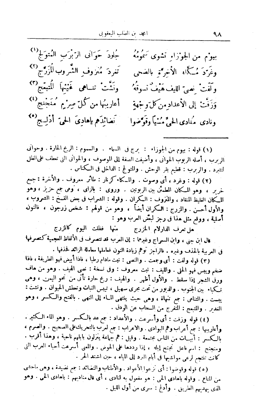 بيوْم من الجوْزاءِ تشوى سَمُومُهُ ... جُلودَ حَوَانى الرّبْرَبِ المُتوَلج