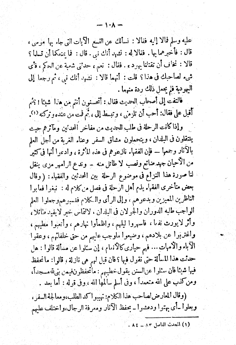 وإذا كانت المرحلة في طلب الحديث من مفاخر المحدثين ومآثرهم حيث ينتقلون في البلدان، ويتحملون مشاق السفر وعناء الغربة من أجل العلم بالآثار وجمعها، فإن الفقهاء نازعوهم في هذه المأثرة، وادعوا أنها في كثير من الأحيان جهد ضائع ونصب لا طائل منه، وندع الرامهرمزي ينقل لنا صورة هذا النزاع في موضوع الرحلة بين المُحَدِّثِينَ وَالفُقَهَاءِ: «وَقَالَ بَعْضُ مُتَأَخِّرِي الفُقَهَاءِ يَذُمُّ أَهْلَ الرِّحْلَةِ فِي فَصْلٍ مِنْ كَلامٍ لَهُ: نَبَغُوا فَعَابُوا النَّاظِرِينَ المُمَيِّزِينَ وَبَدَّعُوهُمْ، وإِلَى الرَّأْيِ وَالكَلامِ فَنَسَبُوهُمْ، وَجَعَلُوا العِلْمَ الوَاجِبَ طَلَبَهُ، الدَّوَرَانَ وَالجَوَلَانَ فِي البُلْدَانِ، لالْتِمَاسِ خَبَرٍ لا يُفِيدُ طَائِلاً، وَأَثَرٍ لاَ يُوَرِّثُ نَفْعًا فَأَسْهَرُوا لَيْلَهُمْ، وَأَظْمَأُوا نَهَارَهُمْ، وَأَتْعَبُوا مَطِيَّهُمْ، وَاغْتَرَبُوا عَنْ بِلاَدِهِمْ، وَضَيَّعُوا مَا وَجَبَ عَلَيْهِمْ مِنْ حَقِّ خُلَفَائِهِمْ، وَعَقُّوا الآبَاءَ وَالأُمَّهَاتِ ... ، فَهُمْ حَيَارَى كَالأَنْعَامِ، إِنْ سُئِلُوا عَنْ مَسْأَلَةٍ، قَالُوا: هَلْ حَدَثَتْ هَذِهِ المَسْأَلَةُ حَتَّى تَقُولَ فِيهَا؟ فَإِنْ قِيلَ لَهُمْ: هِيَ نَازِلَةٌ قَالُوا: مَا نَحْفَظُ فِيهَا شَيْئًا، فَإِنْ سُئِلُوا عَنِ السُّنَنِ، يَقُولُ خَطِيبُهُمْ: مَا تَحْفَظُونَ فِي " مَنْ بَنَى لِلَّهِ مَسْجِدًا "، وَ" مَنْ كَذَبَ عَلَيَّ مُتَعَمِّدًا "، وَفِي " أَسْلَمَ سَالَمَهَا اللَّهُ " وَفِي قَوْلِهِ أَمَّا بَعْدُ.