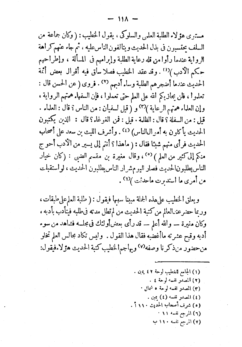 (٥) " شرف أصحاب الحديث ": ص ١١٠ أ.