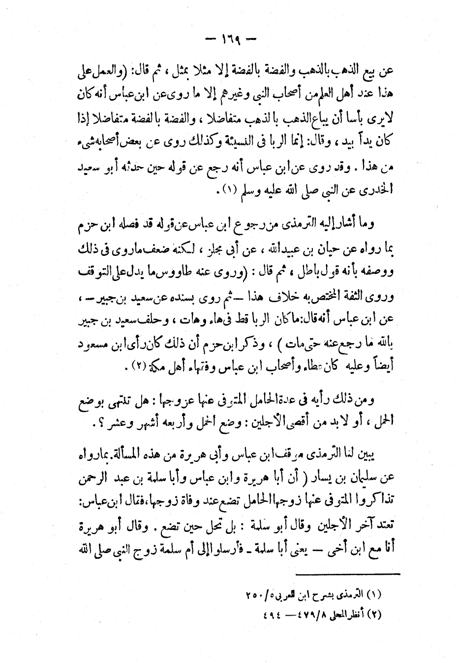 عَنْ بَيْعِ الذَّهَبِ بِالذَّهَبِ وَالفِضَّةِ بِالفِضَّةِ إِلَّا مِثْلاً بِمِثْلٍ»، ثم قال: «وَالعَمَلُ عَلَى هَذَا عِنْدَ أَهْلِ العِلْمِ مِنْ أَصْحَابِ النَّبِيِّ صَلَّى اللَّهُ عَلَيْهِ وَسَلَّمَ وَغَيْرِهِمْ إِلاَّ مَا رُوِيَ عَنْ ابْنِ عَبَّاسٍ، أَنَّهُ كَانَ لاَ يَرَى بَأْسًا أَنْ يُبَاعَ الذَّهَبُ بِالذَّهَبِ مُتَفَاضِلاً، وَالفِضَّةُ بِالفِضَّةِ مُتَفَاضِلاً، إِذَا كَانَ يَدًا بِيَدٍ، وقَالَ: " إِنَّمَا الرِّبَا فِي النَّسِيئَةِ "، وَكَذَلِكَ رُوِيَ عَنْ بَعْضِ أَصْحَابِهِ شَيْءٌ مِنْ هَذَا، وَقَدْ رُوِيَ عَنْ ابْنِ عَبَّاسٍ أَنَّهُ رَجَعَ عَنْ قَوْلِهِ حِينَ حَدَّثَهُ أَبُو سَعِيدٍ الخُدْرِيُّ عَنِ النَّبِيِّ صَلَّى اللَّهُ عَلَيْهِ وَسَلَّمَ» (١).