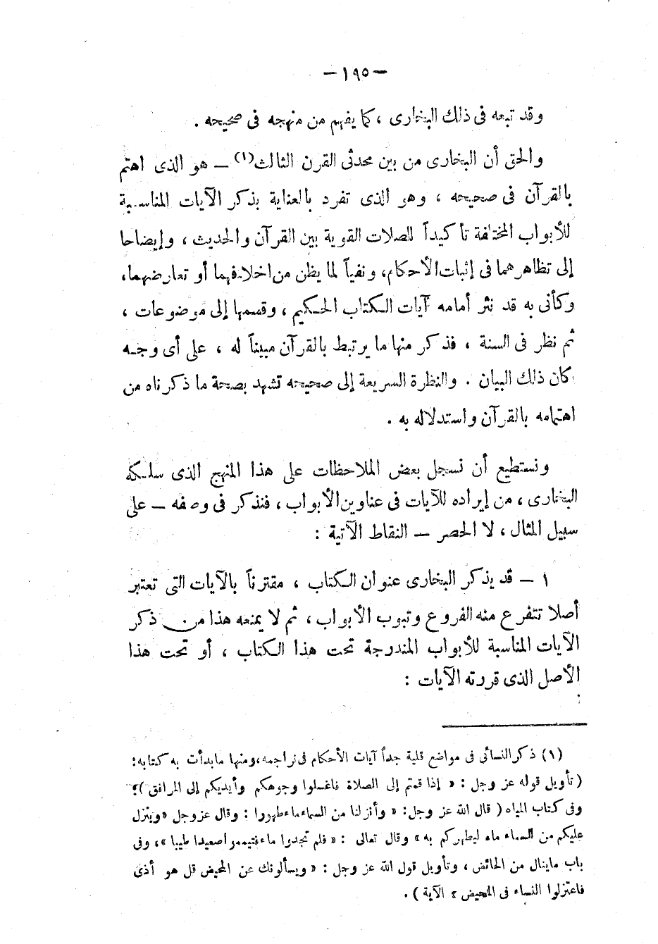 ونستطيع أن نسجل بعض الملاحظات على هذا المنهج الذي سلكه البخاري، من إيراده للآيات في عناوين الأبواب، فنذكر في وصفه - على سبيل المثال، لا الحصر - النقاط الآتية: