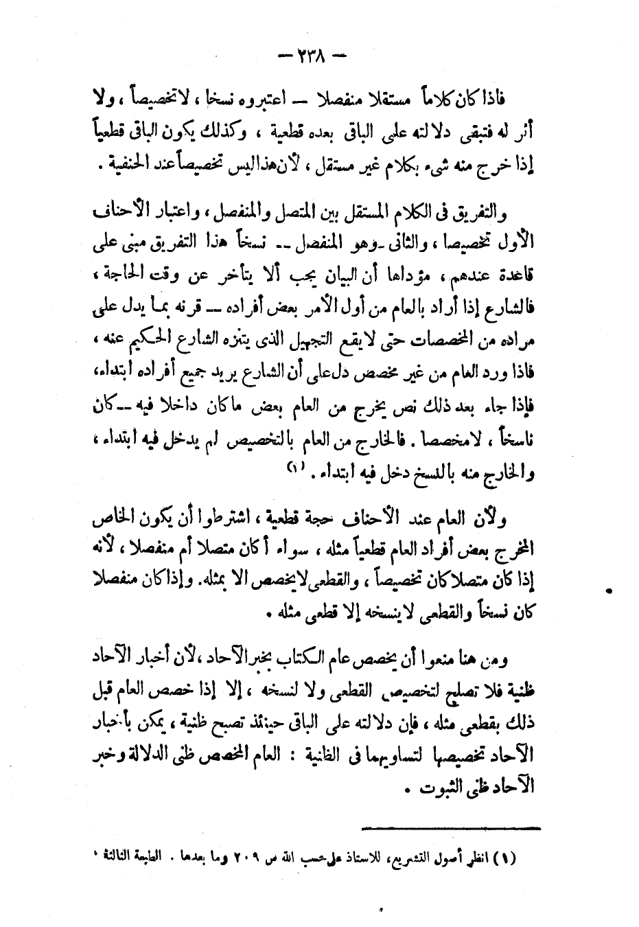(١) انظر " أصول التشريع "، للأستاذ علي حسب الله: ص ٢٠٩ وما بعدها. الطبعة الثالثة.
