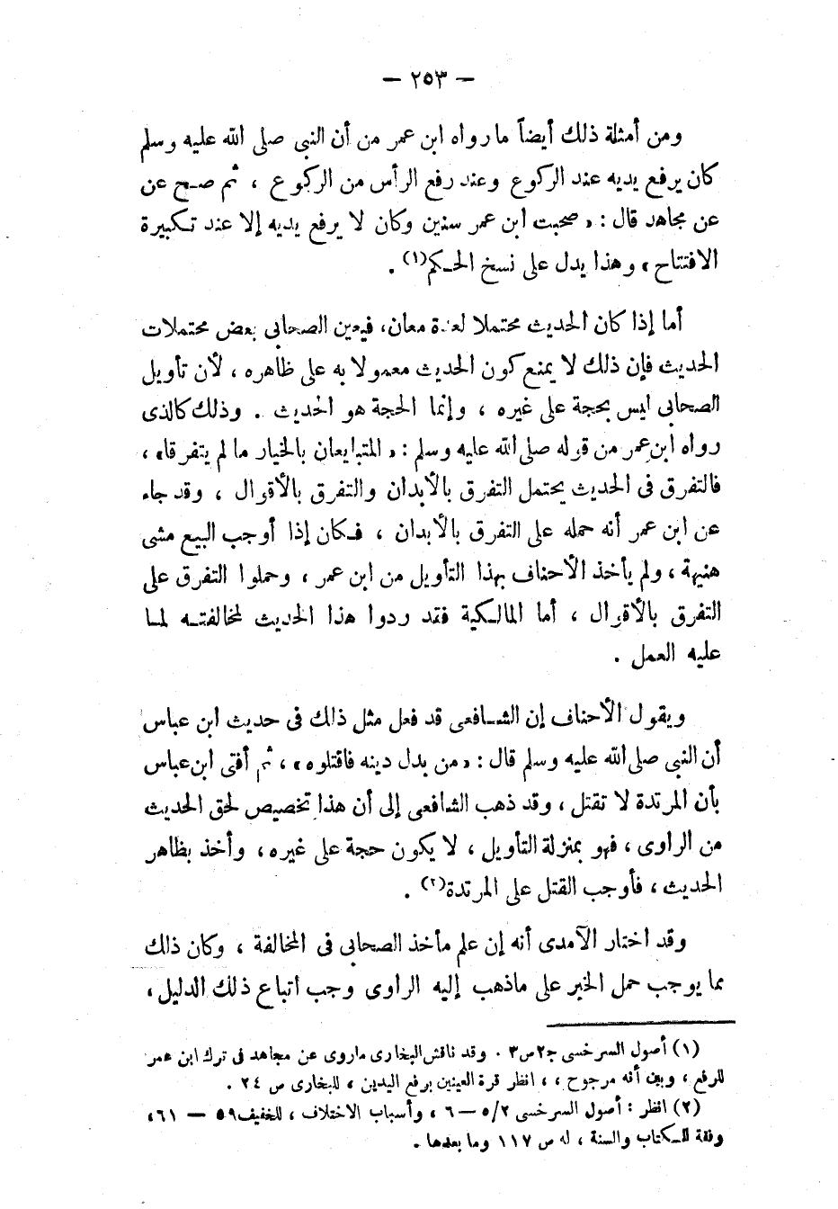 (١) " أصول السرخسي ": ج ٢ ص ٣. وقد ناقش البخاري ما روي عن مجاهد في ترك ابن عمر للرفع، وَبَيَّنَ أنه مرجوح، انظر " قرة العينين برفع اليدين "، للبخاري: ص ٢٤.