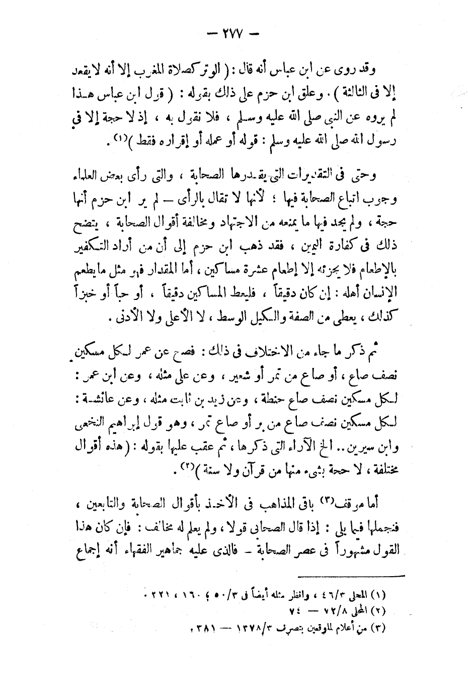 (١) " المحلى ": ٣/ ٤٦، وانظر مثله أيضًا في: ٣/ ٥٠، ١٦٠، ٢٢١.