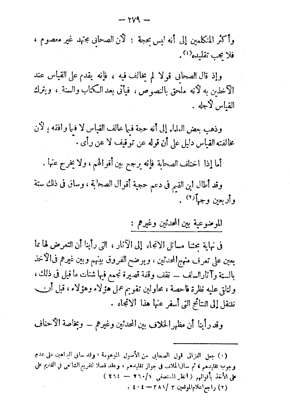 (١) جَعَلَ الغَزَالِيُّ قَوْلَ الصَّحَابِيَّ مِنَ الأُصُولِ المَوْهُومَةِ، وَقَدْ سَاقَ البَرَاهِينَ عَلَى عَدَمِ وُجُوبِ تَقْلِيدِهِمْ، ثُمَّ سَاقَ الخِلَافَ فِي جَوَازِ تَقْلِيدِهِمْ، وَعَقَدَ فَصْلاً لِتَفْرِيعِ الشَّافِعِيِّ فِي القَدِيمِ عَلَى الأَخْذِ بِأَقْوَالِهِمْ (انظر " المستصفى ": ١/ ٢٦٠، ٢٦٤).