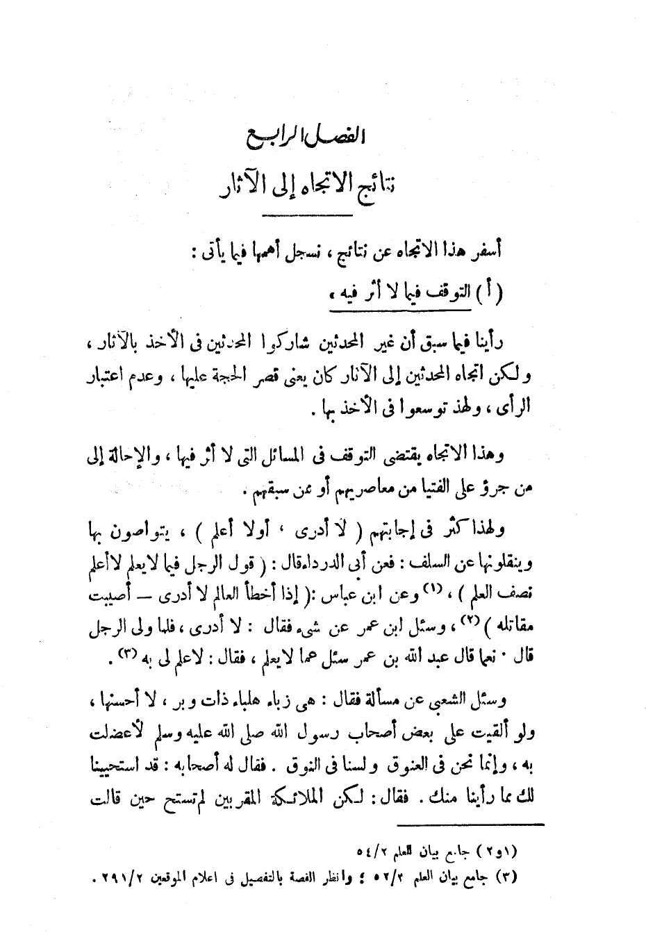 الفَصْلُ الثَّالِثُ (*): نَتَائِجُ الاِتِّجَاهِ إِلَى الآثَارِ: