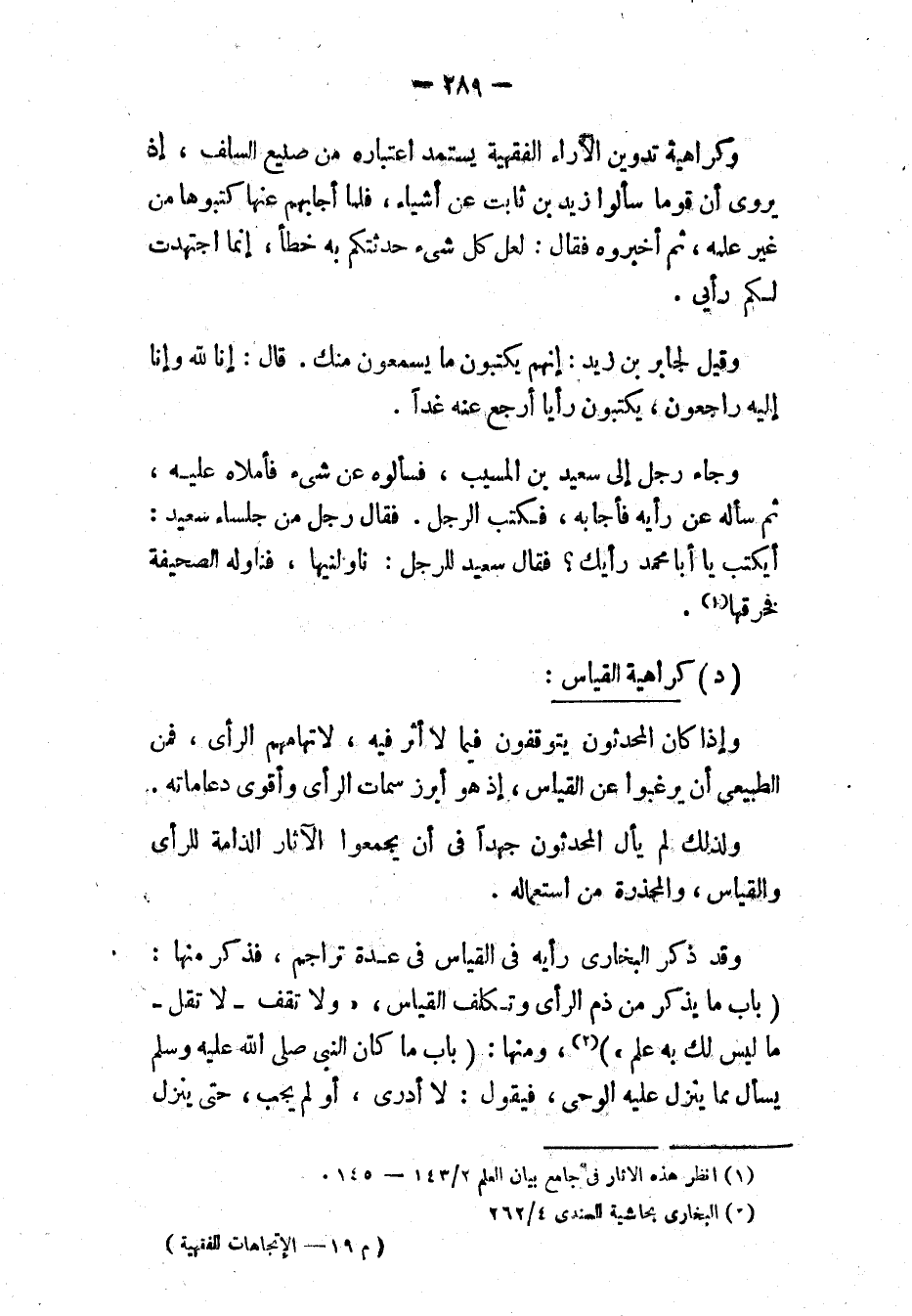 ولذلك لم يأل المحدثون جهدًا في أن يجمعوا الآثار الذامة للرأي والقياس، والمحذرة من استعماله.