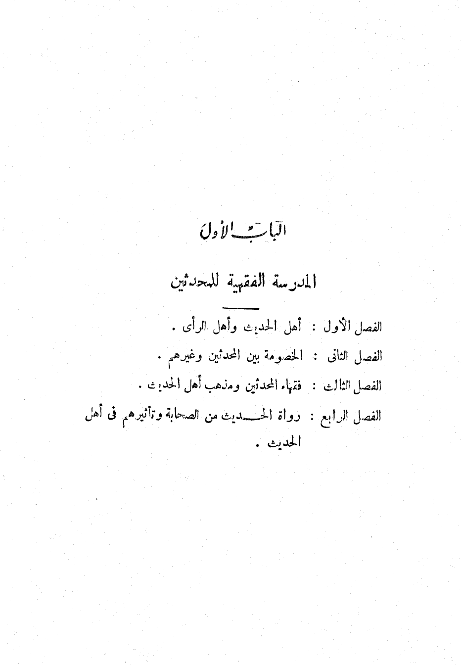 البَابُ الأَوَّلُ: المَدْرَسَةُ الفِقْهِيَّةُ لِلْمُحَدِّثِينَ: