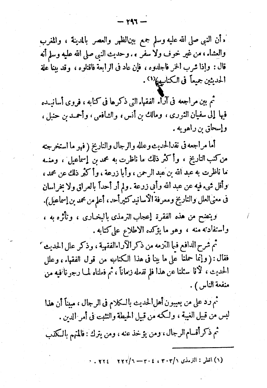 (*) انظر " شرح علل الترمذي "، لابن رجب الحنبلي (ت ٧٩٥ هـ)، حققه وكمل فوائده بتعليقات حافلة الدكتور نور الدين عتر، ١/ ٣١، الطبعة الأولى: ١٣٩٨ هـ - ١٩٧٨ م، دار الملاح للطباعة والنشر.