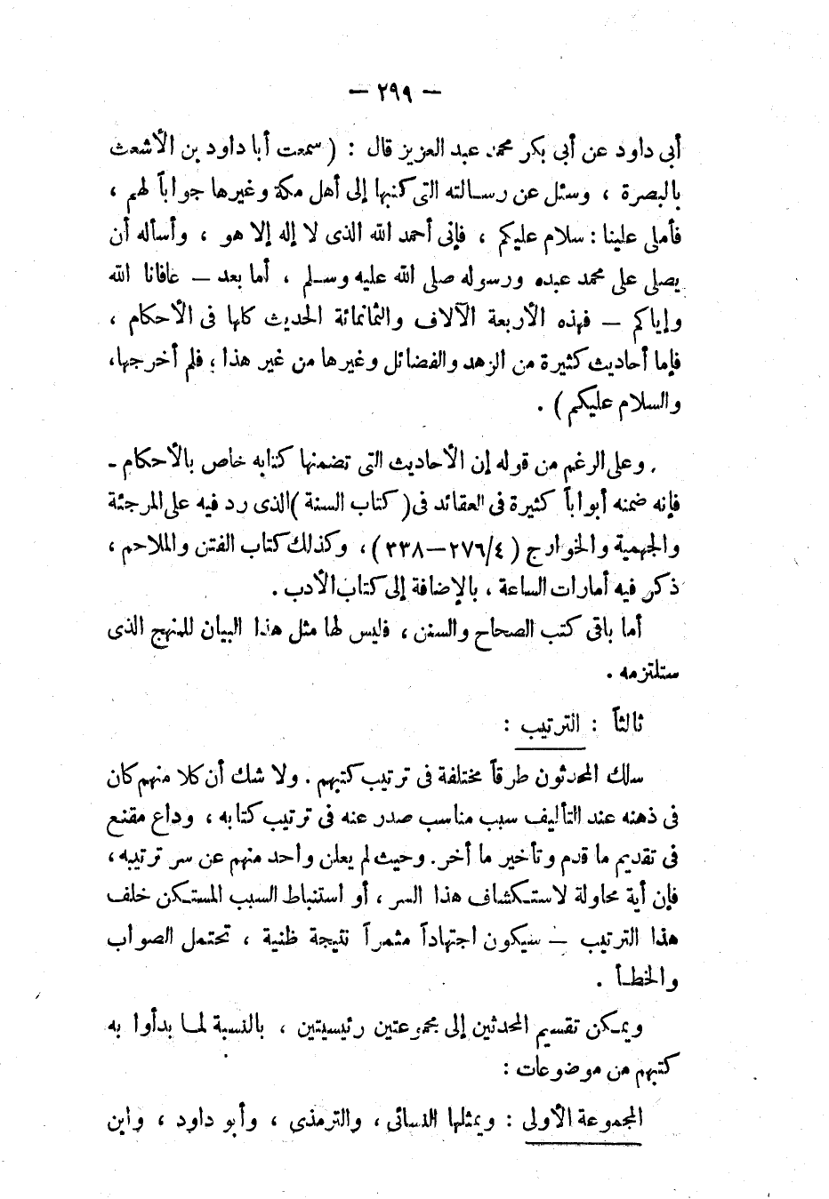 المجموعة الأولى: ويمثلها النسائي، والترمذي، وأبو داود، وابن