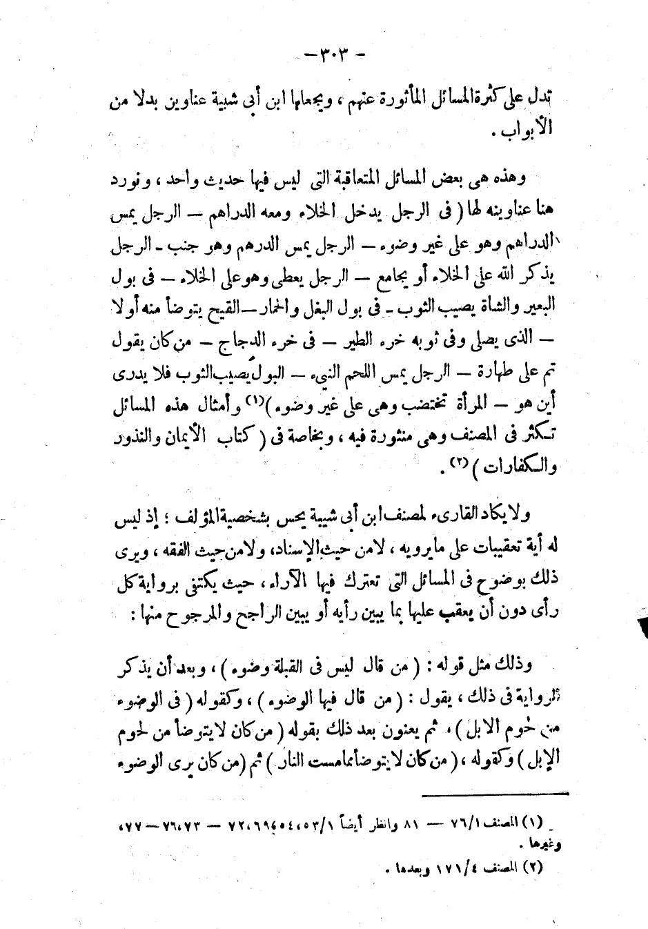 تدل على كثرة المسائل المأثورة عنهم، ويجعلها ابن أبي شيبة عناوين بدلاً من الأبواب.