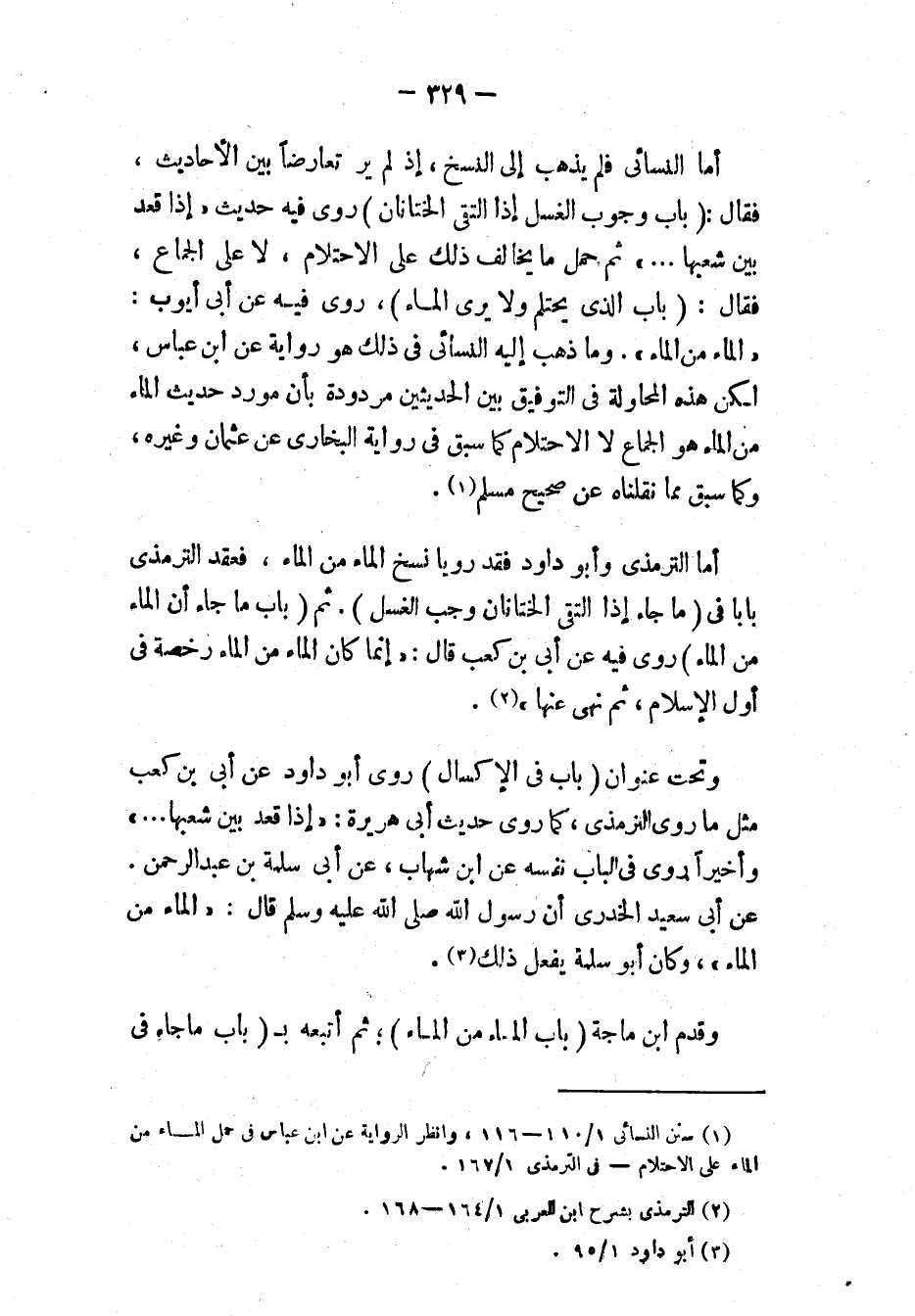 (١) " سنن النسائي ": ١/ ١١٠، ١١٦، وانظر الرواية عن ابن عباس في حمل الماء من الماء على الاحتلام - في " الترمذي ": ١/ ١٦٧.
