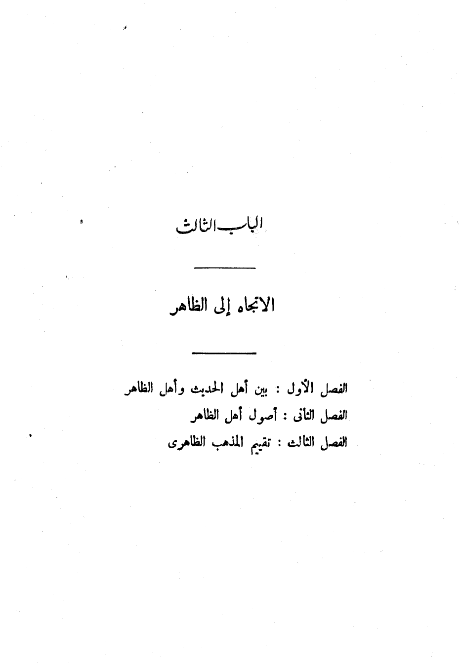 البَابُ الثَّالِثُ: الاِتِّجَاهُ إِلَى الظَّاهِرِ: