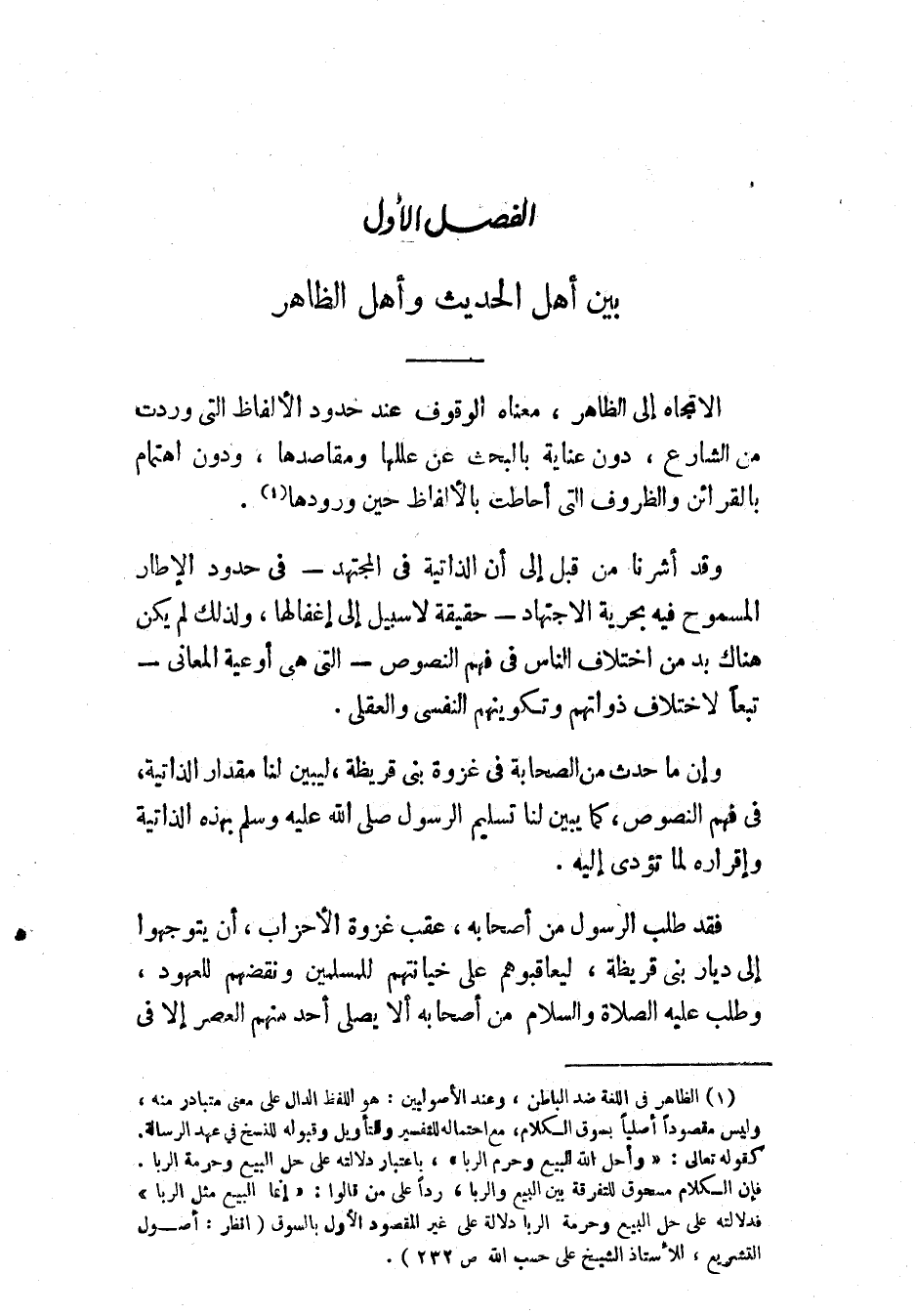 الفَصْلُ الأَوَّلُ: بَيْنَ أَهْلِ الحَدِيثِ وَأَهْلِ الظَّاهِرِ: