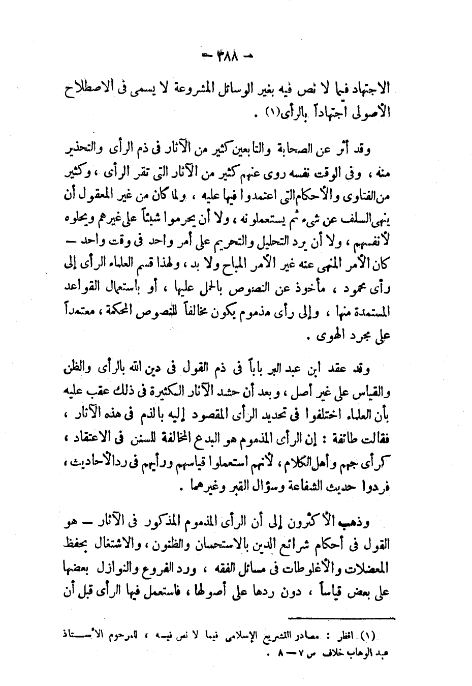 (١) انظر " مصادر التشريع الإسلامي فيما لا نص فيه "، للمرحوم الأستاذ عبد الوهاب خلاف: ص ٧، ٨.
