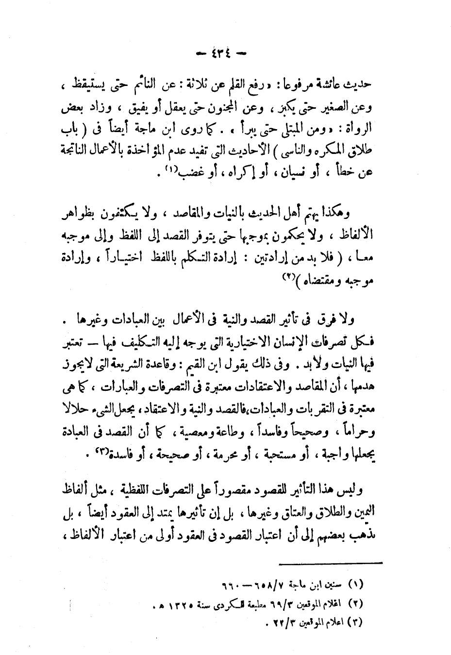وهكذا يهتم أهل الحديث بالنيات والمقاصد، ولا يكتفون بظواهر الألفاظ، ولا يحكمون بموجبها حتى يتوفر القصد إلى اللفظ وإلى موجبه معًا، «فَلَا بُدَّ مِنْ إرَادَتَيْنِ: إرَادَةِ التَّكَلُّمِ بِاللَّفْظِ اخْتِيَارًا، وَإِرَادَةِ مُوجِبِهِ وَمُقْتَضَاهُ» (٢).