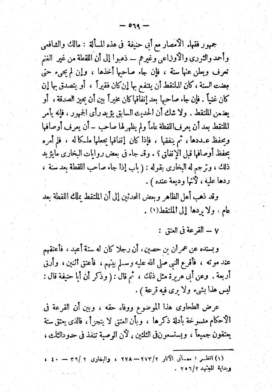 (١) انظر " معاني الآثار ": ٢/ ٢٧٣، ٢٧٨؛ و" البخاري ": ٢/ ٣٩، ٤٠؛ و" بداية المجتهد ": ٢/ ٢٥٦.