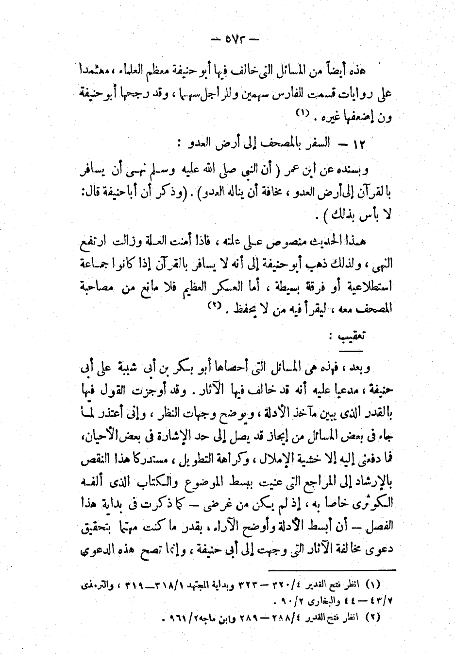 (١) انظر " فتح القدير ": ٤/ ٣٢٠، ٣٢٣؛ و" بداية المجتهد ": ١/ ٣١٨، ٣١٩؛ و" الترمذي ": ٧/ ٤٢، ٤٤؛ و" البخاري ": ٢/ ٩٠.