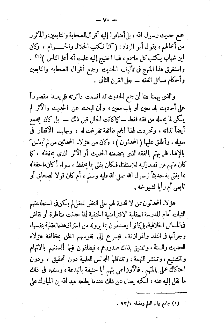 (١) " جامع بيان العلم وفضله ": ١/ ٧٣.
