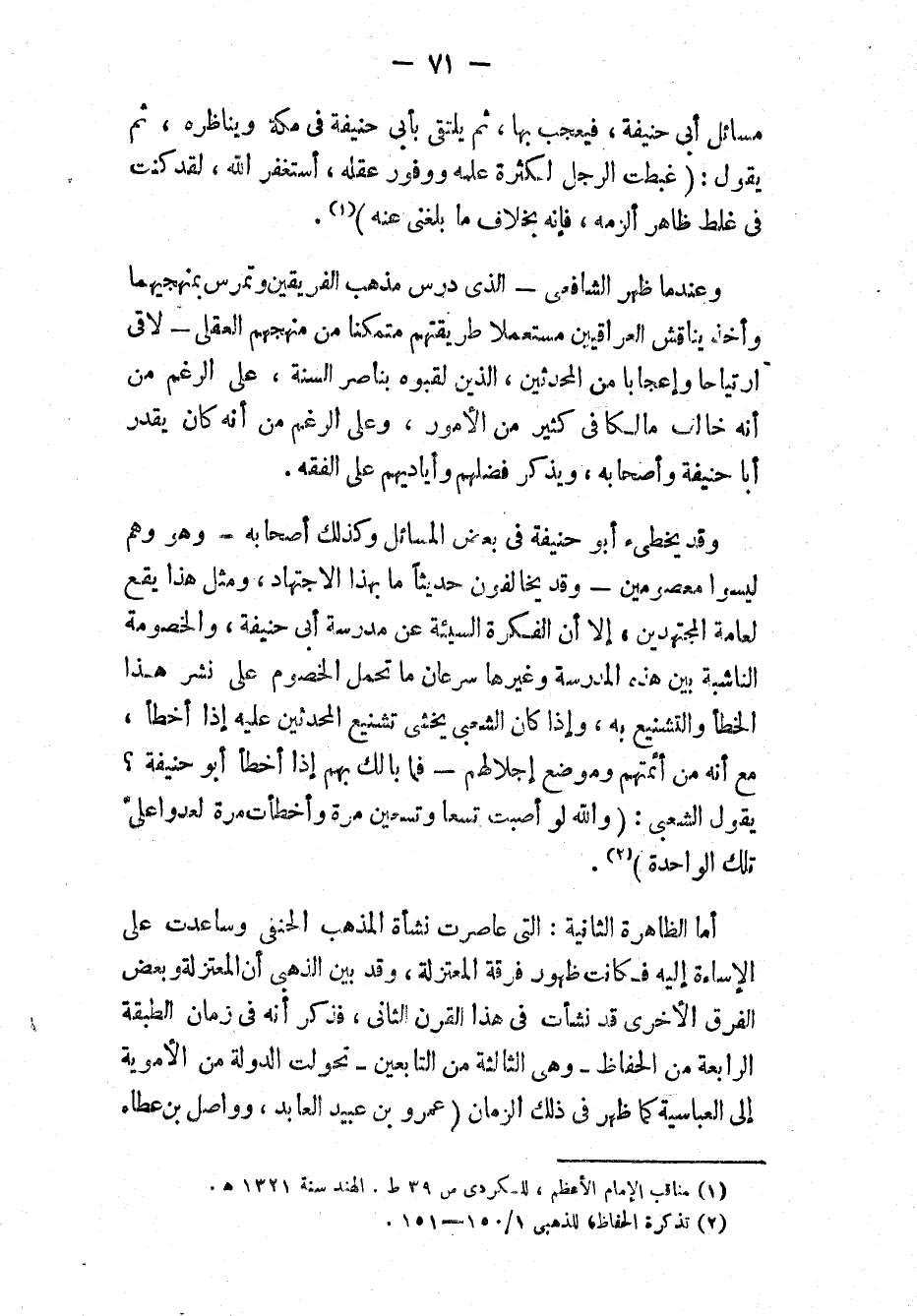 أما الظاهرة الثانية: التي عاصرت نشأة المذهب الحنفي وساعدت على الإساءة إليه فكانت ظهور فرقة المعتزلة، وَقَدْ بَيَّنَ الذهبي أن المعتزلة وبعض الفرق الأخرى قد نشأت في هذا القرن الثاني، فذكر أنه في زمان الطبقة الرابعة من الحفاظ - وهي الثالثة من التابعين - تحولت الدولة من الأموية إلى العباسية كما ظهر في ذلك الزمان «عَمْرُو بْنُ عُبَيْدٍ العَابِدُ، وَوَاصِلُ بْنُ عَطَاءٍ