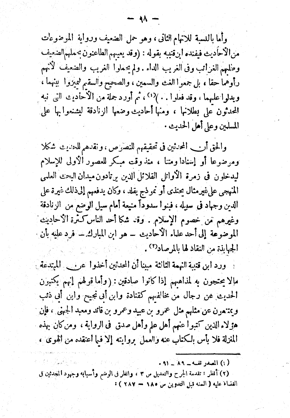 (٢) انظر " تقدمة الجرح والتعديل ": ص ٣، وانظر في الوضع وأسبابه وجهود المحدثين في القضاء عليه " السنة قبل التدوين ": ص ١٨٥، ٢٨٧.