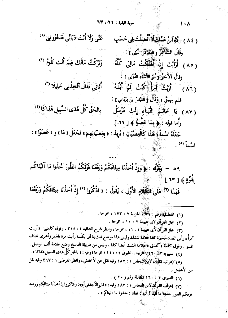 قوله {وَإِذْ أَخَذْنَا مِيثَاقَكُمْ وَرَفَعْنَا فَوْقَكُمُ الطُّورَ خُذُواْ مَآ آتَيْنَاكُم بِقُوَّةٍ} فهذا على الكلام الأول. يقول: "اذُكروا اذ أَخَذْنا ميثاقَكُم وَرَفَعَنا