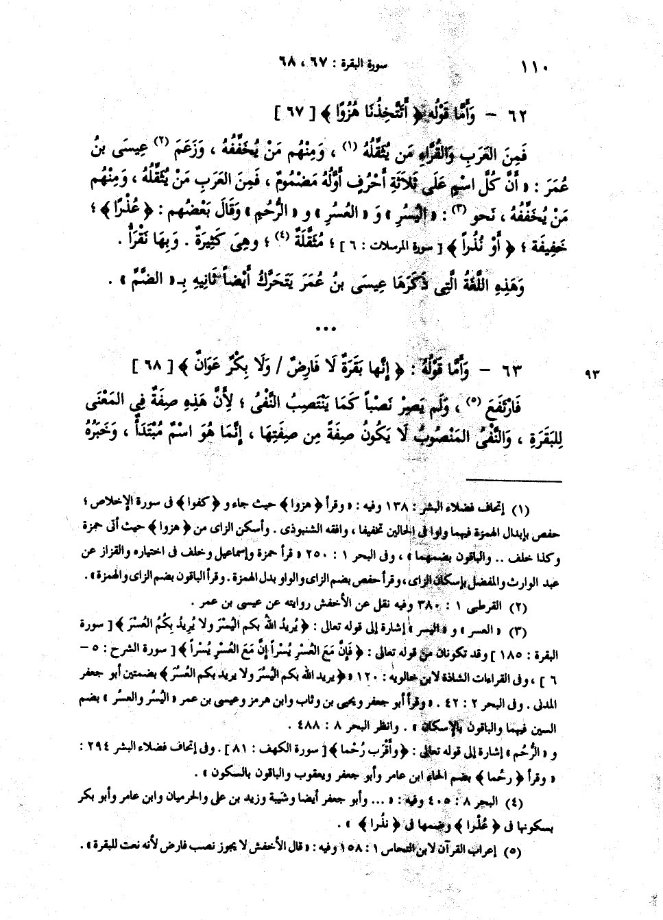 أما قوله {إِنَّهَا بَقَرَةٌ لاَّ فَارِضٌ [46ب] وَلاَ بِكْرٌ عَوَانٌ} فارتفع ولم يصر نصبا كما ينتصب النفي لان هذه صفة في المعنى للبقرة. والنفي المنصوب لا يكون صفة من صفتها، انما هو اسم متبدأ وخبره