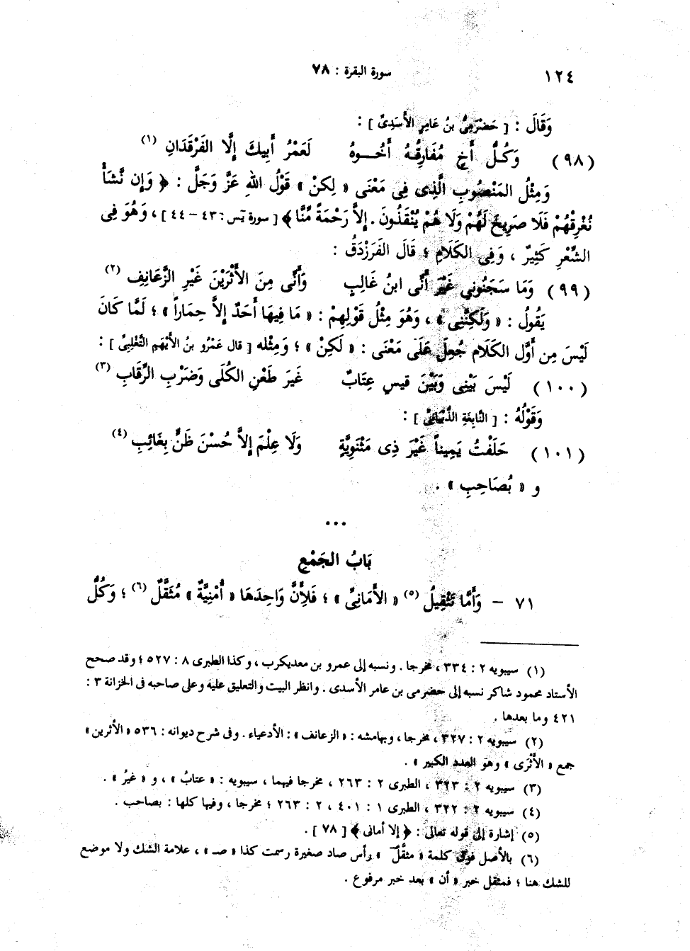 ومثل المنصوب الذي في معنى "لكنْ" قول الله عز وجل {وَإِن نَّشَأْ نُغْرِقْهُمْ فَلاَ صَرِيخَ لَهُمْ وَلاَ هُمْ يُنقَذُونَ} {إِلاَّ رَحْمَةً مِّنَّا} وهو في الشعر كثير وفي الكلام. قال الفرزدق: [من الطويل وهو الشاهد السادس والتسعون] :