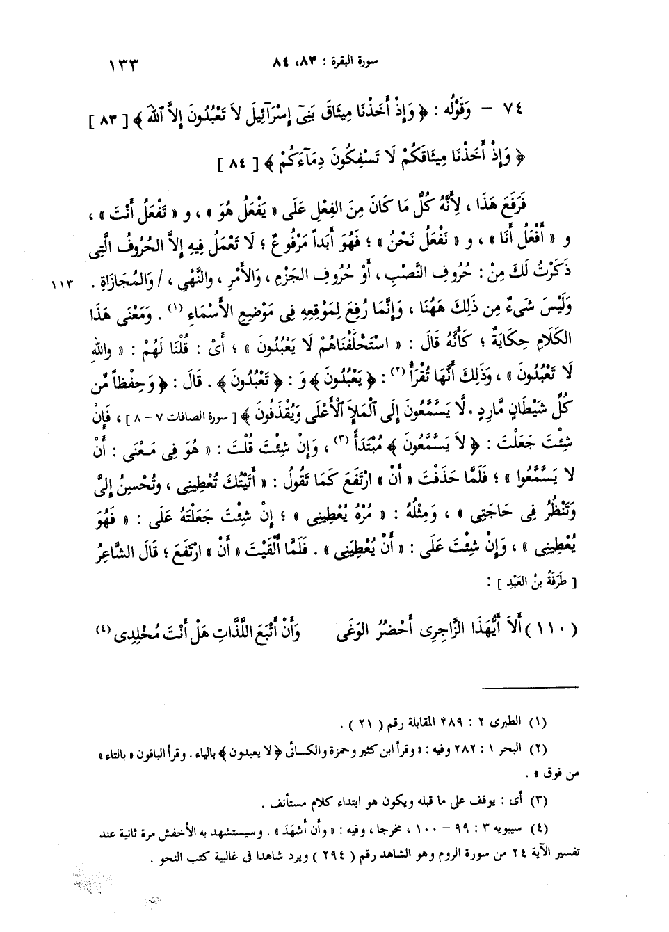 {وَإِذْ أَخَذْنَا مِيثَاقَ بَنِي إِسْرَائِيلَ لاَ تَعْبُدُونَ إِلاَّ اللَّهَ وَبِالْوَالِدَيْنِ إِحْسَاناً وَذِي الْقُرْبَى وَالْيَتَامَى وَالْمَسَاكِينِ وَقُولُواْ لِلنَّاسِ حُسْناً وَأَقِيمُواْ الصَّلاَةَ وَآتُواْ الزَّكَاةَ ثُمَّ تَوَلَّيْتُمْ إِلاَّ قَلِيلاً مِّنْكُمْ وَأَنْتُمْ مُّعْرِضُونَ}