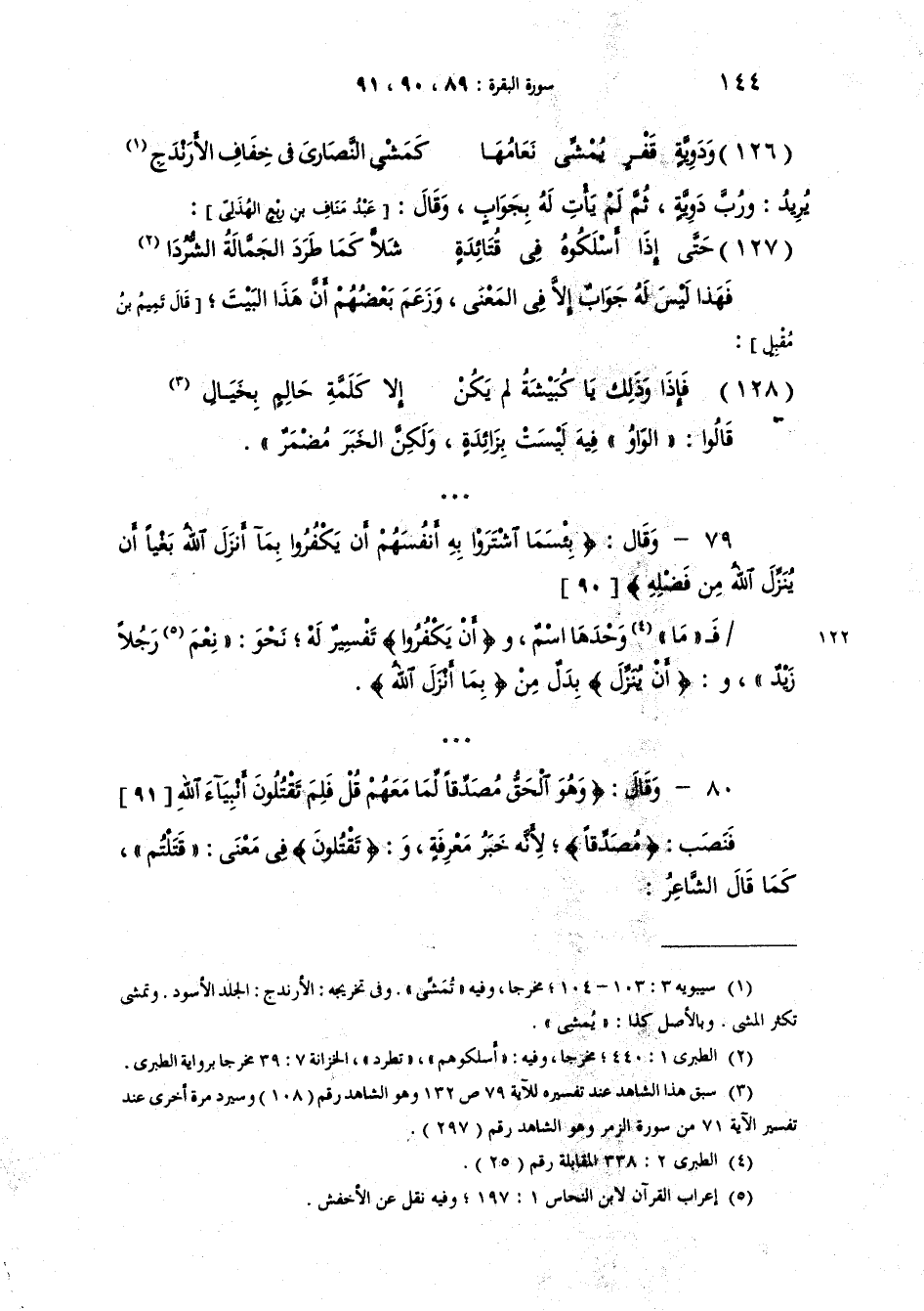 قال {وَهُوَ الْحَقُّ مُصَدِّقاً لِّمَا مَعَهُمْ قُلْ فَلِمَ تَقْتُلُونَ أَنْبِيَآءَ اللَّهِ} فنصب {مُصَدِّقاً} لأنه خبر معرفة. و {تَقْتُلُونَ} في معنى "قَتَلْتُم". كما قال الشاعر: [من الكامل وهو الشاهد الرابع والعشرون بعد المئة] :