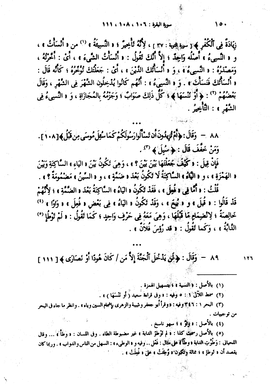 زِيَادَةٌ فِي الْكُفْرِ} لأنَّهُ تأخير. [و] "النَسِيئَةُ" و"النَسِيءُ" أصْلُهُ واحدٌ من "أنسأت"* إلاّ أَنَّكَ تقول: "أَنْسَأتُ الشَيْءَ" أي: أَخَّرْتُه ومصدره: النَسِيءُ. و: "أَنْسَأْتُكَ الدَيْنَ" أي: جعلتك تؤخِّره. كأنه قال: "أَنْسَأْتُكَ" فـ"نَسَأْتُ" و "النَسِيء" أنَّهم كانوا يدخلون الشهر في الشهر. وقال بعضهم {أَوْ نَنْسَها} كل ذلك صواب. وجزمه بالمجازاة. والنسيءُ في الشهر: التأخير.