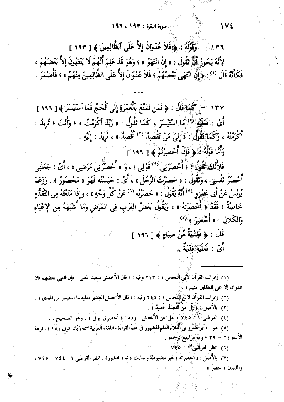 قوله {فَلاَ عُدْوَانَ إِلاَّ عَلَى الظَّالِمِينَ} لانه يجوز ان يقول {إِنِ انتَهَوْاْ} وهو قد علم انهم لا ينتهون الا بعضهم فكأنه قال: "إن انتهى بعضهم فلا عدوان إلا على الظالمين منهم" فأضمر. كما قال {فَمَن تَمَتَّعَ بِالْعُمْرَةِ إِلَى الْحَجِّ فَمَا اسْتَيْسَرَ} [196] أي: فَعَليه ما استيسر كما تقول "زيدا أكرمت" وأنت تريد "أكرمته" وكما تقول "إلى مَنْ تَقْصُد أقصد" تريد "إليه".