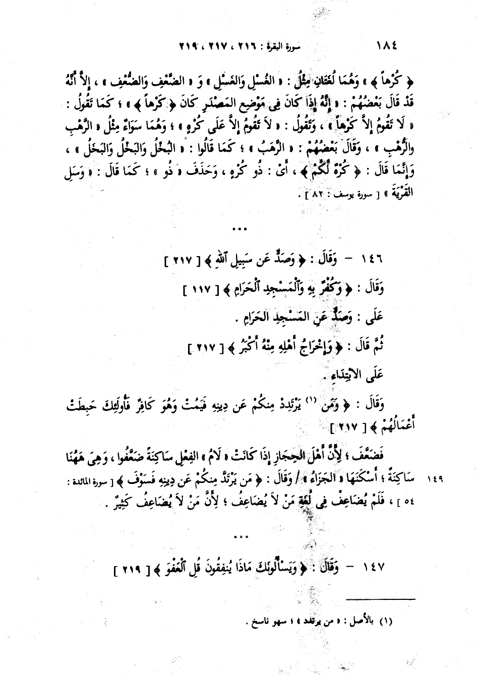 {يَسْأَلُونَكَ عَنِ الشَّهْرِ الْحَرَامِ قِتَالٍ فِيهِ قُلْ قِتَالٌ فِيهِ كَبِيرٌ وَصَدٌّ عَن سَبِيلِ اللَّهِ وَكُفْرٌ بِهِ وَالْمَسْجِدِ الْحَرَامِ وَإِخْرَاجُ أَهْلِهِ مِنْهُ أَكْبَرُ عِندَ اللَّهِ وَالْفِتْنَةُ أَكْبَرُ مِنَ الْقَتْلِ وَلاَ يَزَالُونَ يُقَاتِلُونَكُمْ حَتَّى يَرُدُّوكُمْ عَن دِينِكُمْ إِن اسْتَطَاعُواْ وَمَن يَرْتَدِدْ مِنْكُمْ عَن دِينِهِ فَيَمُتْ وَهُوَ كَافِرٌ فَأُوْلائِكَ حَبِطَتْ أَعْمَالُهُمْ فِي الدُّنْيَا وَالآخِرَةِ وَأُوْلائِكَ أَصْحَابُ النَّارِ هُمْ فِيهَا خَالِدُونَ}