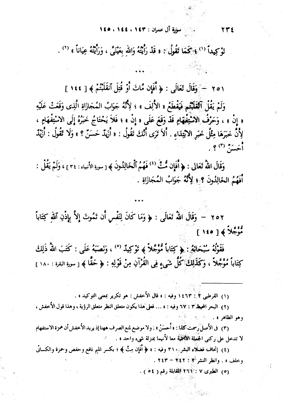 قال الله تعالى {وَمَا كَانَ لِنَفْسٍ أَنْ تَمُوتَ إِلاَّ بِإِذْنِ الله كِتَاباً مُّؤَجَّلاً} فقوله سبحانه {كِتَاباً مُّؤَجَّلاً} توكيد، ونصبه على "كَتَبَ اللهُ ذلك َ كِتاباً مُؤَجَّلاً". وكذلك كل شيء في القرآن من قوله {حَقّا}