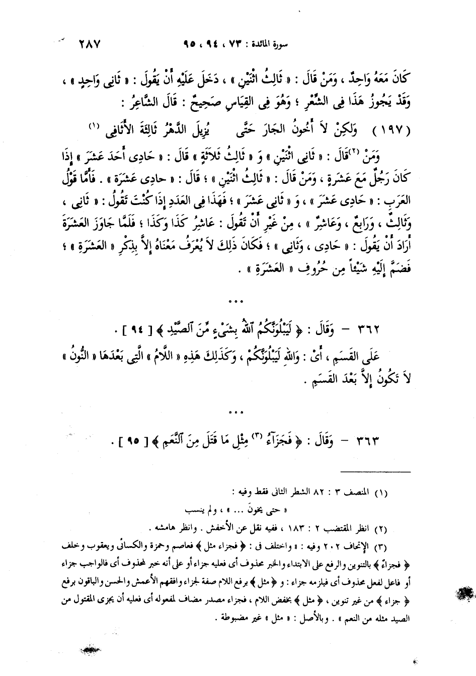 وقال {لَيَبْلُوَنَّكُمُ اللَّهُ بِشَيْءٍ مِّنَ الصَّيْدِ} على القسم أي: وَاللهِ لَيَبْلُوَنَّكُمْ. وكذلك هذه اللام التي بعدها النون لا تكون * الا بعد القسم.