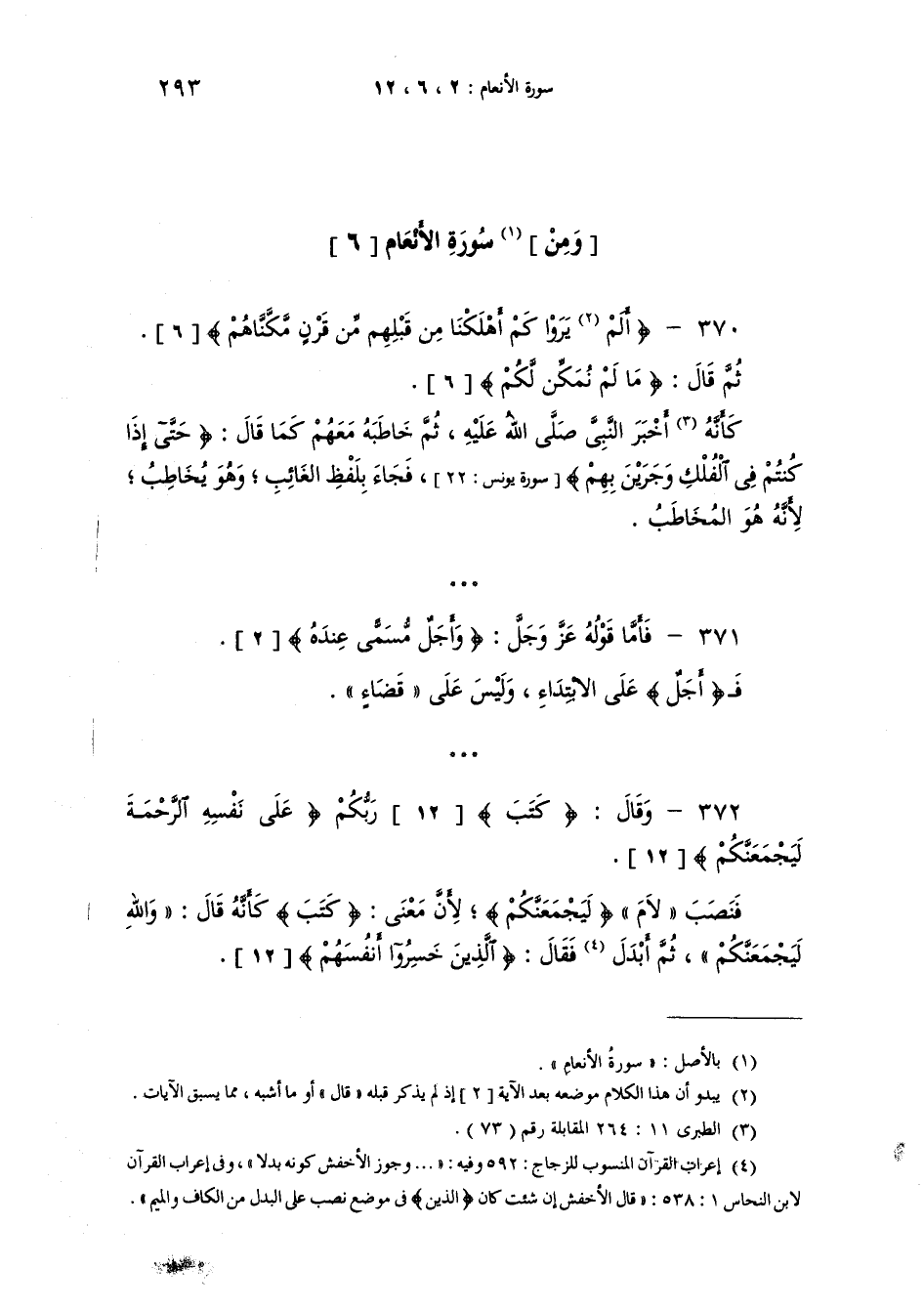 المعاني الواردة في آيات سورة (الأنعام)
